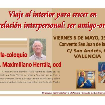 Ofrecemos esta conferencia impartida por el P. Maximiliano Herráiz (ocd) el 6 de mayo de 2011 en Valencia. Fue organizada por Espiritualidad a Distancia “Desierto de Las Palmas”. Ir a descargar