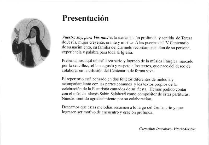 Misa «Para vos nací», compuesta por Sabin Salaberri
