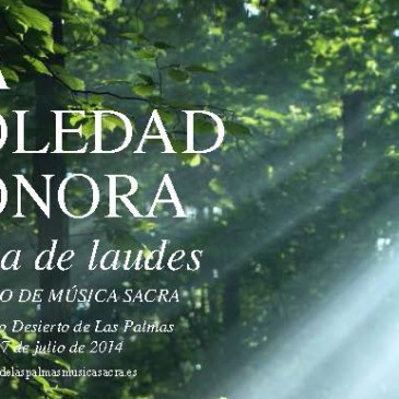 La Soledad sonora: Hora de Laudes XV CICLO DE MÚSICA SACRA Monasterio Desierto de Las Palmas del 22 al 27 de julio de 2014 Director del Ciclo: Antonio Rodríguez Losada Martes, 22 de julio 2014 / 20:00 h Música Divina Rosanna y Gisela Morales, sopranos | Jaume Gimeno, arpa | Juan Antonio Ros, violoncello Juan Carlos … More La soledad sonora: «Hora de Laudes»