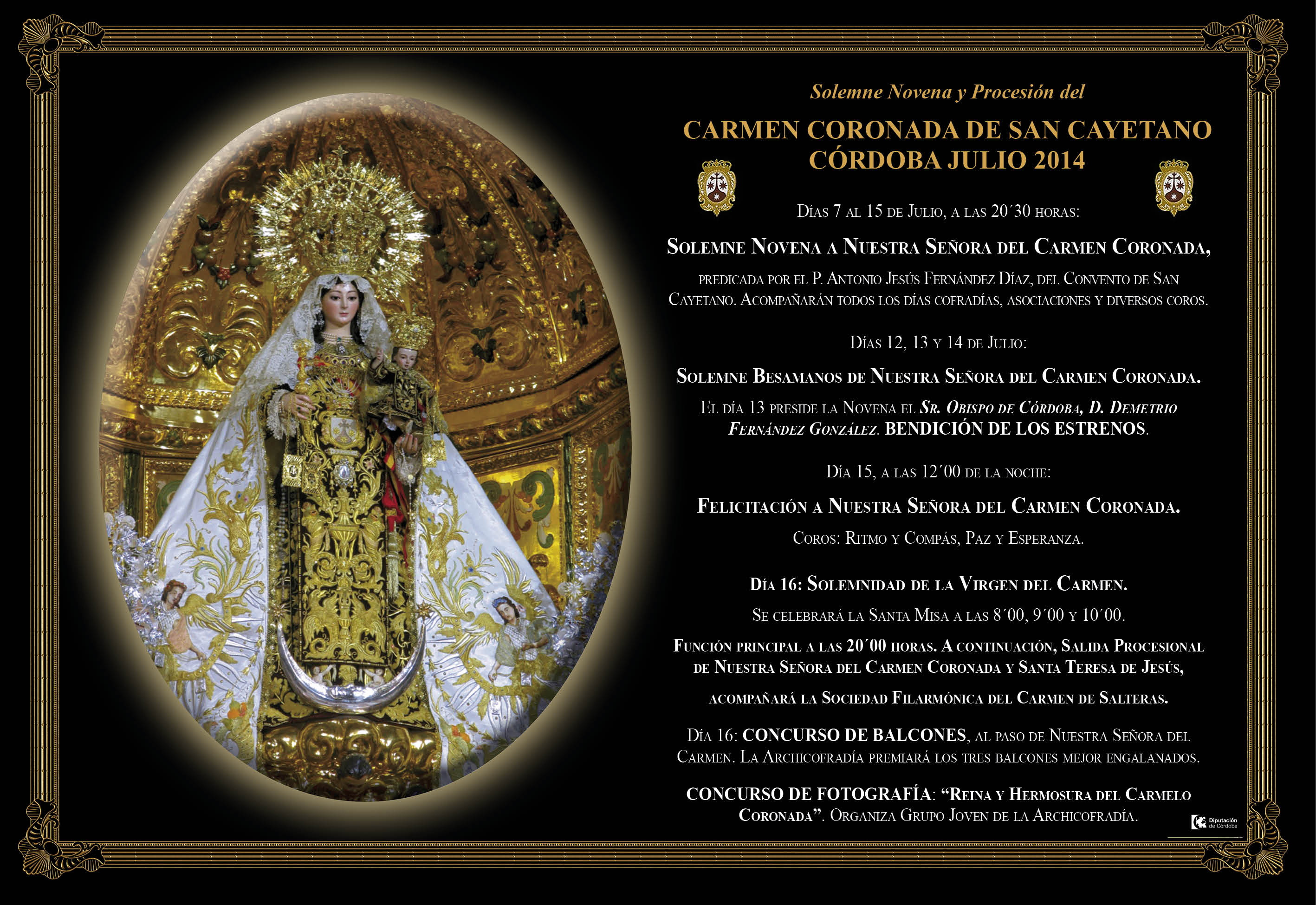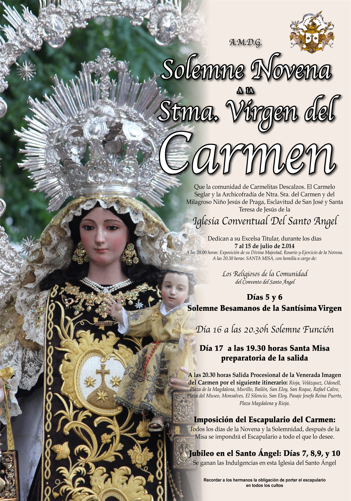 Nos llega esta información sobre la gran fiesta teresiana de la Virgen del Carmen, y su preparación, con una novena. En este caso, las correspondientes a las comunidades andaluzas de Córdoba (San Cayetano) y Sevilla (Santo Ángel). Acogemos con gusto la invitación a participar: