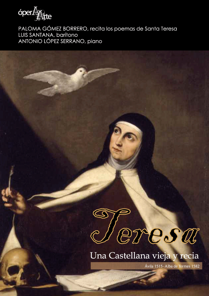 Se trata de un recital, en el que, a lo largo de aproximadamente una hora, el conocido barítono Luis Santana deleitará a los asistentes con piezas de grandes autores como Federico Mompou, Francisco Palazón, Mikel Ortega, Amadeo Vives… sobre letra, entre otros, de Juan de la Enzina, S. Juan de la Cruz o José Luis Martín Descalzo… y, por supuesto, la protagonista, Teresa de Jesús.