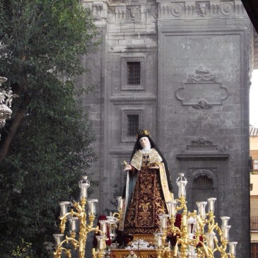 Procesión extraordinaria Preparativos Desde las 19 horas del sábado día 18, la iglesia de San José de nuestra madres Carmelitas, todavía a puerta cerrada, estaba abarrotada de devotos y cofrades que preparaban la procesión: Las monjas en su coro y tras la rejas, aunque sin perder detalle; los frailes que al final nos juntamos (cinco … More Granada aclama a Teresa