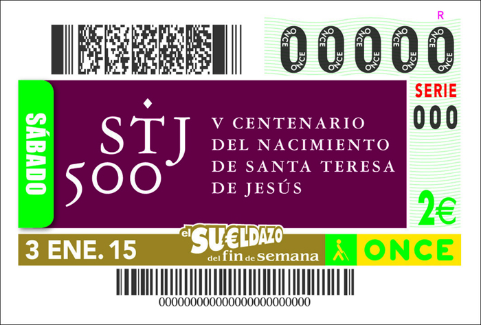 Fruto de esta relación continuada, la ONCE ha puesto todos sus recursos promocionales al servicio de eventos culturales de gran relevancia en Castilla y León. Es el caso del V Centenario del nacimiento de Santa Teresa de Jesús, que llegará a millones de españoles a través de la edición de un cupón temático para el sorteo del sábado 3 de enero de 2015, el primero del año. Se trata de un canal de promoción que permitirá multiplicar la visibilidad en el mercado nacional de esta conmemoración de gran importancia para Castilla y León, logrando que esté presente en 5,5 millones de cupones y contribuyendo al posicionamiento de la Comunidad como destino turístico y cultural asociado a eventos de calidad.