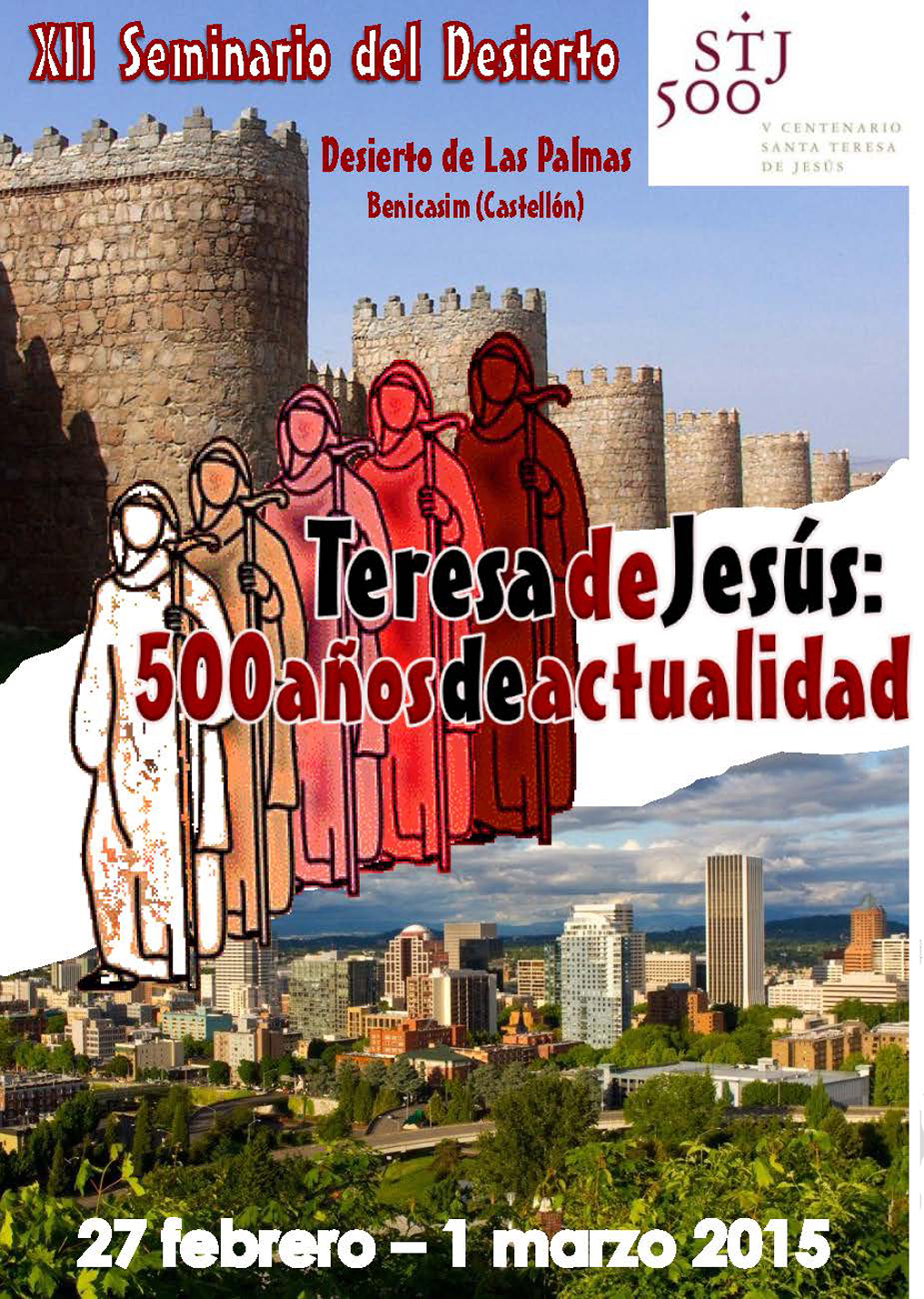 Un año más, se nos convoca al SEMINARIO DEL DESIERTO, ya el número XII, que se celebrará en el Desierto de Las Palmas (Castellón) del 27 DE FEBRERO al 1 DE MARZO, y que en este año del centenario del nacimiento de la Santa de Ávila tratará el tema : TERESA DE JESÚS: 500 AÑOS DE ACTUALIDAD