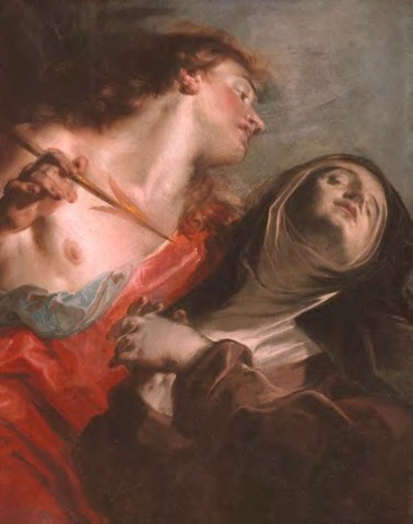 A la derecha de la sala, se exhiben tres imágenes de visiones vividas y narradas por Teresa de Jesús: primero, el Éxtasis, en tres bellísimas versiones realizadas por artistas italianos en el siglo XVIII: Giuseppe Bazzani, Francesco Fontebasso, del Museo de Bellas Artes de Budapest, y Sebastiano Ricci, del Kunsthistorisches Museum de Viena. No podía faltar la representación que de este tema hizo el escultor Gian Lorenzo Bernini, difundida por un grabado de la época realizado por Benoît Thiboust.
