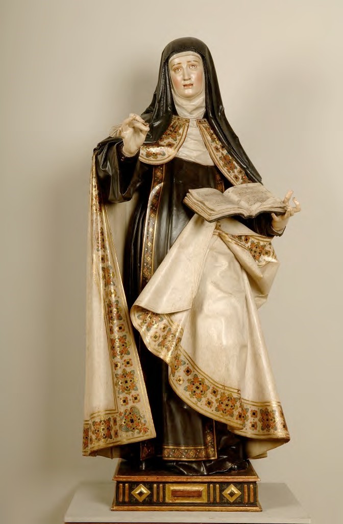 La vida de Teresa de Jesús (1515-‐1582) contada por ella misma en su autobiografía, el Libro de la vida, evocó imágenes a pintores y escultores, y hoy nos ha brindado las palabras que trazan el camino de esta exposición. El maravilloso cuadro de Rubens “La visión de santa Teresa del Espíritu Santo” (de hacia 1614, cuando la Iglesia beatifica a Teresa) da la bienvenida al visitante con una de las visiones de Teresa, que ella narra: “… veo sobre mi cabeza una paloma […]. Paréceme el ruido que hacía con las alas.Estaría aleando espacio de un avemaría”, Vida, 38, 10.