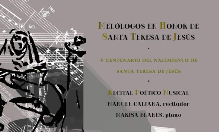 ‘Melólogos en honor de Santa Teresa’ propone seis nuevas piezas compuestas por autores españoles y americanos especialmente para este programa, que serán interpretadas en el piano por Marisa Blanes y acompañadas de los textos de Santa Teresa que las han inspirado, recitados por el actor Manuel Galiana.