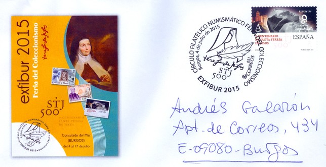 No conviene olvidar la importancia de la última fundación de Santa Teresa en Burgos el 26 de enero de 1582, «en la cual el Señor tenía verdadero interés, porque no fueron pocas las dificultades que rodearon este momento». «Yo estoy contigo». «No dejes de hacer esta fundación», será la respuesta que recibe Teresa ante las quejas que le presenta al Señor por lo que está sucediendo. A los cientos de actos de estos meses se suma este homenaje que perdurará en el tiempo en las colecciones a concurso de los aficionados y en los trabajos de estudio de los filatelistas repartidos por todo el mundo.