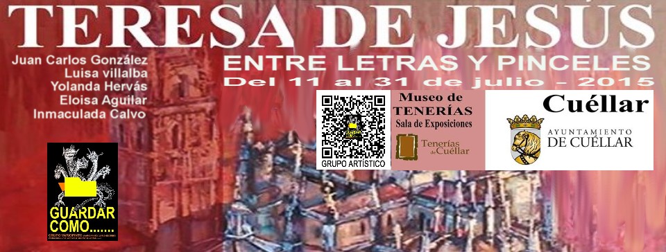 El colectivo vallisoletano «Guardar como…”, formado por Juan Carlos González, Luisa Villalba, Yolanda Hervás, Eloisa Aguilar e Inmaculada Calvo, rinde homenaje a Teresa de Jesús en el V Centenario de su nacimiento con una exposición de pintura y poesía. Se podrá visitar desde el 11 al 31 de julio en el centro de Tenerías de Cuéllar (Segovia).La exposición se puede visitar por las mañanas de 12 a 14 horas y las tardes de 19 a 21 horas.