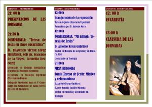2. Me parece maravilloso que las personas nos interesemos mas por conocer y seguir los caminos de la vida de Santa Teresa a raíz de este acontecimiento mundial que estamos celebrando.Que estas jornadas que celebráis os ayude y nos ayude a todos.