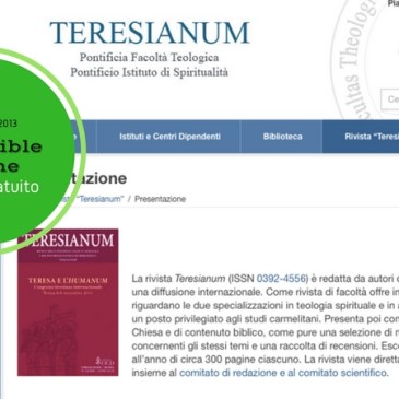 Disponibles gratuitamente los artículos completos desde 1947 hasta 2014 La revista de la Facultad de Teología de los carmelitas descalzos en Roma, (el Teresianum) comienza sus publicaciones en 1947, con el nombre de Ephemerides carmeliticae. Más tarde, pasó a tomar el nombre de la propia facultad, Teresianum. En su página web, acaba de incluir una nueva … More La revista Teresianum, en acceso abierto
