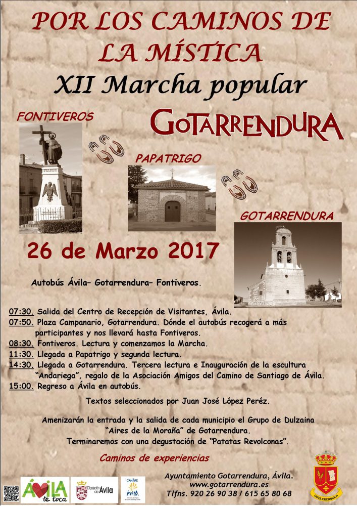 Al término de la marcha, tuvo lugar la inauguración de una nueva imagen de la santa con motivos jacobeos: un bordón, una calabaza, una concha y una cruz de Santiago. La estatua, denominada «Andariega», ha sido costeada por la Asociación de Amigos del Camino de Santiago de Ávila, y fue inaugurada por el Diputado de Turismo Rafael Pérez Nieto, al que luego la alcaldesa del municipio, Mª Yolanda de Juan, agradeció su asistencia y la de todos los que estaban presentes, invitándoles a degustar las típicas patatas revolconas de Gotarrendura.