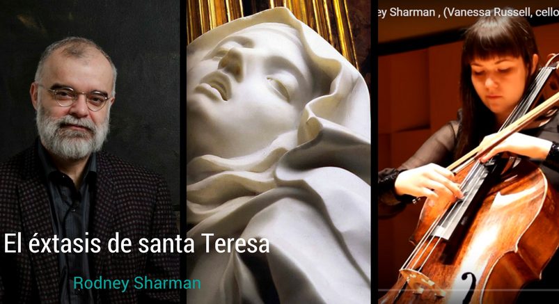 En diciembre de 2004, visité El Éxtasis de Santa Teresa de Bernini en la Capilla de Cornaro, en Sta. María della Vittoria, Roma. La escultura representa el primer arrobamiento de Santa Teresa de Ávila, una comunión física y espiritual con Cristo. En su autobiografía, Teresa describe a un ángel armado con una flecha con una punta de fuego que llegó hasta ella mientras ella cantaba «Veni Creator Spiritus». Me atrajo lo físico de su descripción, y traduje y adapté este fragmento junto con otros dos episodios de su vida, situándolos entre secciones más largas de música para violonchelo solo. Los cantos se basan en fuentes del Liber Usualis. El éxtasis de Santa Teresa fue escrito especialmente para Frances Marie Uitti, a quien está dedicado.