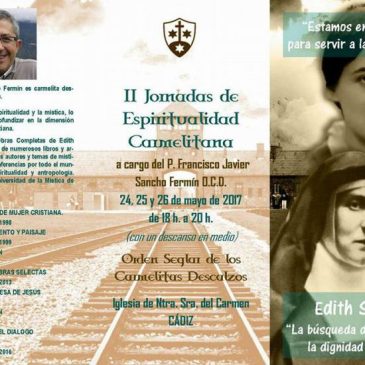 El Carmelo Descalzo Seglar de Cádiz organiza las II Jornadas de Espiritualidad Carmelitana. Este año, a cargo del P. Francisco Javier Sancho Fermín o.c.d. Serán los días 24, 25 y 26 de mayo, de 18h a 20h. en la Iglesia de Nuestra Señora del Carmen de Cádiz. Estarán dedicadas a la figura y al pensamiento de … More Edith Stein: la búsqueda de la verdad y la dignidad humana