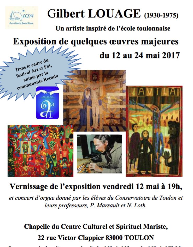 Guy Lodier, algunos amigos de Gilbert Louage y el Centro Cultural y Espiritual Marista que poseen importantes obras de Louage, permitirán que se puedan contemplar de nuevo el trabajo de este artista inspirado, –aunque, por desgracia, poco conocido–, fallecido en el cenit de su carrera.