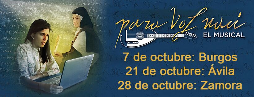 PARA VOS NACÍ – EL MUSICAL”, vuelve a escena con motivo del Año Jubilar Teresiano. La obra pone en escena la biografía de Sta Teresa de Jesús; una visión real entre el siglo XVI y el s.XXI, donde se relaciona La Santa y el personaje que la biografía, escenificado por Alma. Se ofrece una óptica joven, actual y dinámica, muy sensible al hombre y la mujer de hoy. El autor de la composición musical y coordinador de la obra es Rogelio Cabado, compositor y cantautor, que ha sabido marcar ritmos y ambientes muy apropiados, combinando estilos varios: polifonía, pop- rock sinfónico, fusión. El guión original corre a cargo la periodista Águeda Lucas, que hiciera el musical “No tengáis miedo”, sobre la figura de Juan Pablo II y que ha sido visto por más de 35.000 espectadores en sus representaciones en España y Europa.