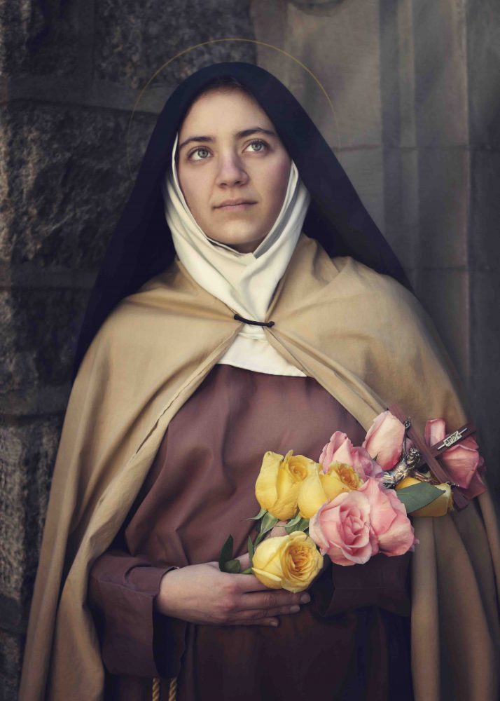 Qué pena con el pintor, pero no se parece en su físico en nada a Teresa de Lisieux.