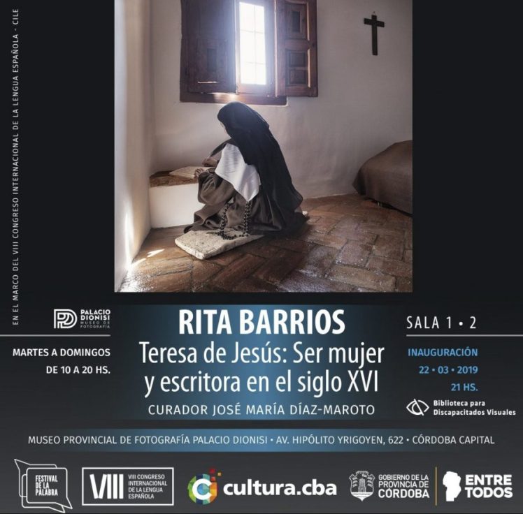 Esta exposición, que Rita Barrios presenta en Córdoba (Argentina) dentro del VIII Congreso Internacional de la Lengua Española, nace a partir de su libro Teresa de Jesús 500 años. El Carmelo Descalzo foto a foto que la Editorial Monte Carmelo (Grupo Editorial Fonte) publicó en el año 2015 para el V Centenario del Nacimiento de Santa Teresa.