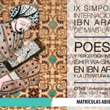 MIAS-Latina y el CITeS nos invitan l próximo Simposio Internacional, organizado en el marco de la Universidad de la Mística (CITeS) de Ávila, que se celebrará los días 10-12 de mayo de 2019. IX SIMPOSIO INTERNACIONAL IBN ARABI DE MIAS-LATINA En la lengua árabe, y especialmente en el lenguaje de Ibn Arabi, los términos ši’r, poesía, … More Poesía y percepción interior en Ibn Arabi y en la literatura mística