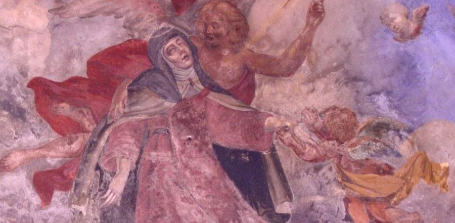 «A principios del siglo XVII, carmelitas descalzos procedentes, posiblemente, de la actual Polonia compraron unos terrenos cercanos a la muralla de la ciudad de Lviv con el objetivo de edificar su propio convento. Poco después comenzó la construcción de la actual iglesia de San Miguel, cuyos frescos vamos a analizar, ideada por el arquitecto Jan Pokorowicz (†1645). No sería el único convento carmelita, el mismo año de su finalización, en 1642, muy cerca de allí, comenzaba la construcción de otro convento de la Orden, aunque esta vez femenino. Su iglesia, hoy llamada de la Presentación, fue diseñada por el italiano Giovanni Battista Gisleni (1600–1672) siguiendo el modelo de la iglesia de Santa Susana de Roma. A pesar de que los miembros de la Orden tuvieron que abandonar los conventos a finales del siglo XVI- II debido a la política religiosa del emperador austriaco José II (1741–1790), todavía hoy podemos deleitarnos con la iconografía carmelitana de los frescos de la iglesia de San Miguel y la fachada de la iglesia de la Presentación, una de las más bellas e infravaloradas de la ciudad de Lviv, que presenta una estatua del éxtasis de Santa Teresa realizada por Andrew Szwanera en 1688».