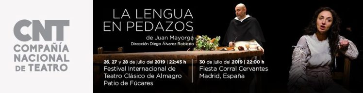 Del 26 al 28 de julio, el Festival de Teatro Clásico de Almagro estrena la obra de Juan Mayorga La lengua en pedazos, protagonizada por Teresa de Jesús, en diálogo con un inquisidor. La novedad reside en que, en esta ocasión, es la Compañía Nacional de Teatro de México la que lleva a escena la obra. En el papel de la santa, María Giménez.