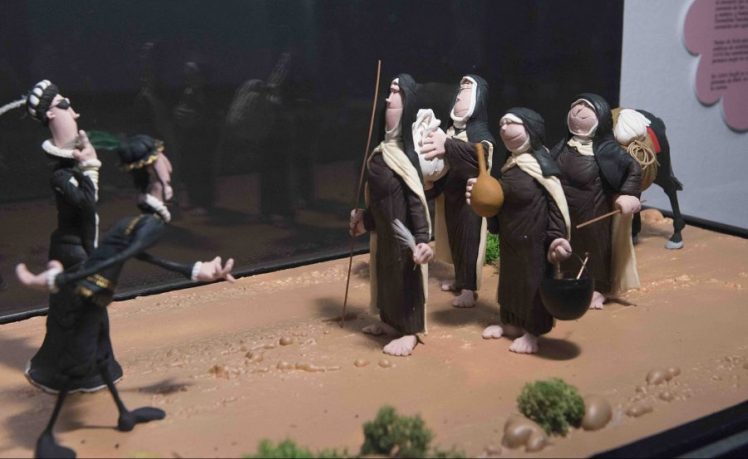 Teresa de Jesús aparece, junto a un grupo de hermanas carmelitas, en el momento de iniciar la fundación del Carmelo de Pastrana, presentándose ante los príncipes de Éboli, en el inicio del que sería uno de los episodios más complicados de la historia fundacional teresiana.