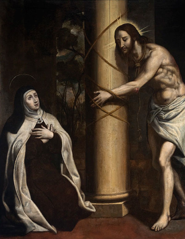 Y, al final, mientras reflexiono en la “Casa natal” de santa Teresa en Ávila y la visito en su capilla, ahora en plena soledad y silencio de la iglesia clausurada, la imagino extasiada en su hornacina, quizá repasando amorosamente los “Pasos” de la Pasión, y recupero su “manera” de orar ante un “Cristo llagado” (Vida, 9, 1); acompañándole en la inmensa soledad y la “aflicción” del Huerto de los Olivos (ib., 9, 4); o iniciando un diálogo amoroso “mirando a Cristo” y sintiendo que él la mira (Camino, 26, 1), no pensando mucho, sino amando mucho. Hasta experimentar que Cristo era su “Libro vivo”, cuando la Inquisición le quitó los libros muertos de los teólogos (Vida, 26, 6). Y escucho sus consejos a los orantes: “Si estáis alegres, miradle resucitado […[; si estáis con trabajos o tristes, miradle camino del Huerto […] o miradle atado a la Columna, lleno de dolores […]” (Camino, 26, 4-5).