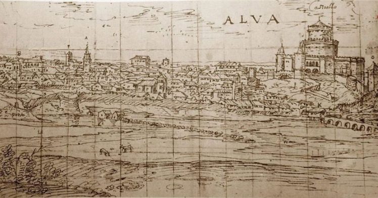 Después de Ávila, pocos lugares pueden alardear de haber poseído una relación especial con santa Teresa de Jesús como Alba de Tormes, la villa que en el siglo XVI, por residir en ella los duques de tal nombre, pasó a ser la segunda Corte Española. En esa época era la populosa localidad plasmada en 1570 por Anton van den Wyngaerde, dibujante paisajista flamenco que reflejó la más antigua panorámica de aquella población: el río Tormes en primer plano –barrera natural que la defiende, abraza y fecunda–, el emblemático puente que vadea sus aguas de una a otra orilla, el majestuoso castillo-palacio de los duques de Alba, el caserío que a sus pies se extiende y la “vega grande y espaciosa, / verde en el medio del invierno frío, / en el otoño verde y primavera, / verde en la fuerza del ardiente estío”, cantada por Garcilaso, el poeta y militar español del Siglo de Oro.