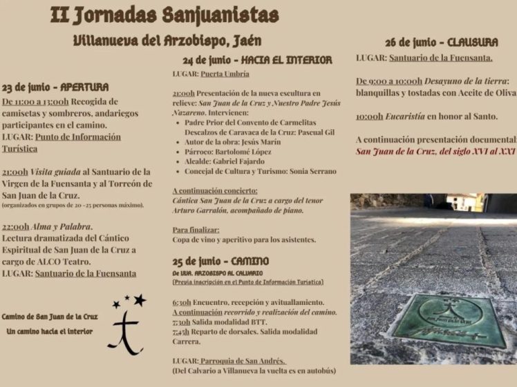 Han terminado las jornadas dedicadas a San Juan de la Cruz en Villanueva del Arzobispo (Jaén). Han sido cuatro días emotivos e históricos donde se ha dejado ver el mensaje de austeridad, humildad y poesía en la huella del paso de San Juan por esa tierra. Este documental recoge paso a paso el trabajo y esfuerzo de los villanovenses por san Juan de la Cruz. “Sin otra luz ni guía, sino la que en el corazón ardía”.