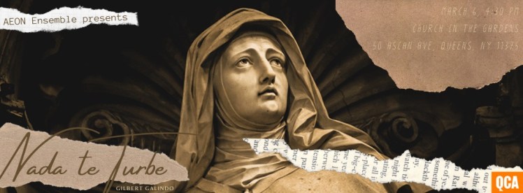 El pasado 6 de marzo de 2022, se estrenó “Nada te turbe, para voces y cuerda” pieza del compositor Gilbert Galindo, interpretada por Aeon ensemble. El estreno tuvo lugar en una iglesia conocida como “Church-in-the-Gardens”, en el vecindario de Forest Hills del condado de Queens, Nueva York.