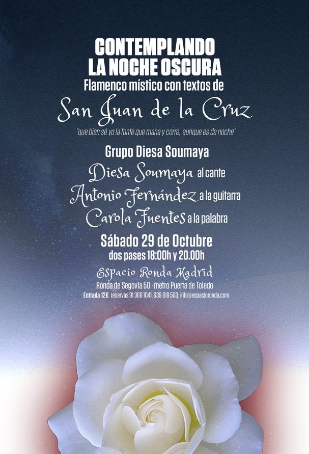 El pasado 29 de octubre, el Espacio Ronda (Madrid) organizó un concierto titulado: Contemplando la noche oscura. Flamenco místico con textos de S. Juan de la Cruz.