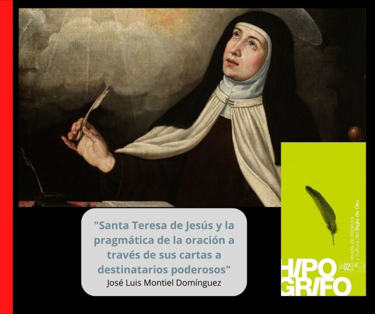 José Luis Montiel Domínguez, profesor de la Facultad de Filología en la Universidad de Huelva, publica en el Vol. 10, Núm. 2 (2022), pp. 323-340, de la revista Hipogrifo. Revista de literatura y cultura del Siglo de Oro, un artículo titulado: «Santa Teresa de Jesús y la pragmática de la oración a través de sus cartas a destinatarios poderosos». Como hemos comentado en otras ocasiones, siempre nos alegra saber que se investiga en torno al epistolario teresiano, todavía un tesoro por descubrir.