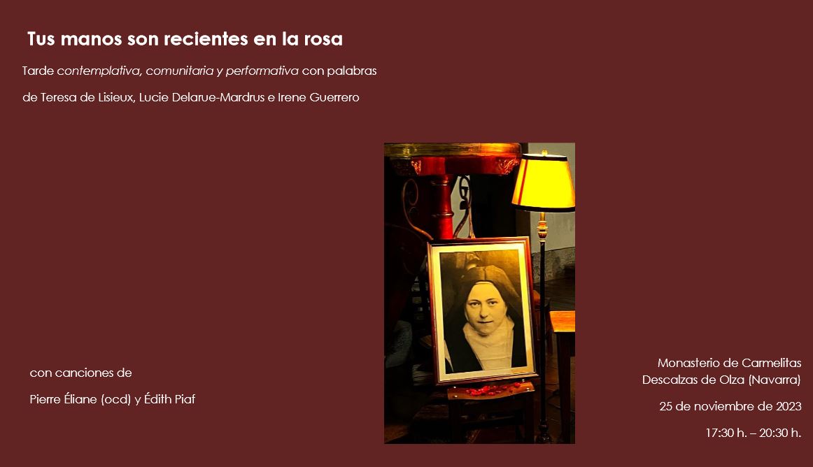 «Tus manos son recientes en la rosa»: Tarde contemplativa y performativa en el Carmelo de Olza (Navarra), el próximo sábado 25 de noviembre.
