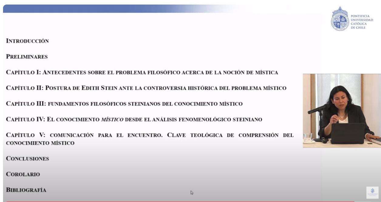 Gwendolyn Araya Gómez, defenderá su tesis doctoral: “El conocimiento místico en el pensamiento de Edith Stein en clave teológica de comunicación para el encuentro”. La actividad se realizará el lunes 22 de enero a las 9.00 h. en la sala del tercer piso de la Facultad de Teología UC, Av. Vicuña Mackenna 4860, Macul, Santiago.