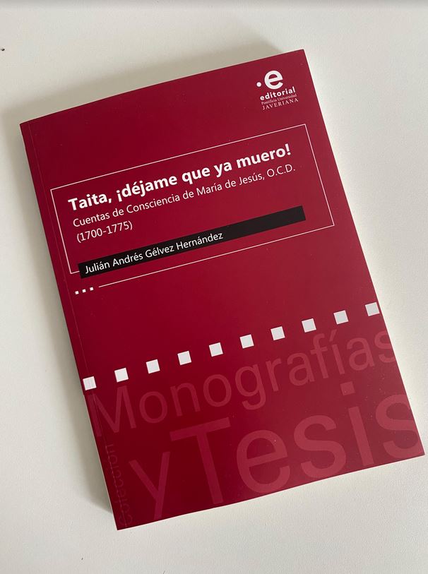 «Taita, ¡déjame que ya muero! » Cuentas de consciencia de María de Jesús, O.C.D. (1700-1775) es el título de una obra que acaba de salir publicada por la Pontificia Universidad Javeriana de Colombia. Este volumen es el resultado de un trabajo de investigación de Julián Andrés Gálvez que constituyó su tesis de maestría en Teología por dicha Universidad en 2022.