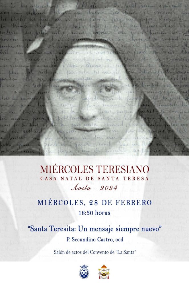 Santa Teresita: un mensaje siempre nuevo (Secundino Castro) Publicado el 09/05/2024 por MJ Dentro del ciclo «Miércoles Teresiano», tuvo lugar el pasado 28 de febrero, en la Casa Natal de Santa Teresa, en Ávila, esta conferencia del P. Secundino Castro, ocd, titulada «Santa Teresita: un mensaje siempre nuevo». Relacionado