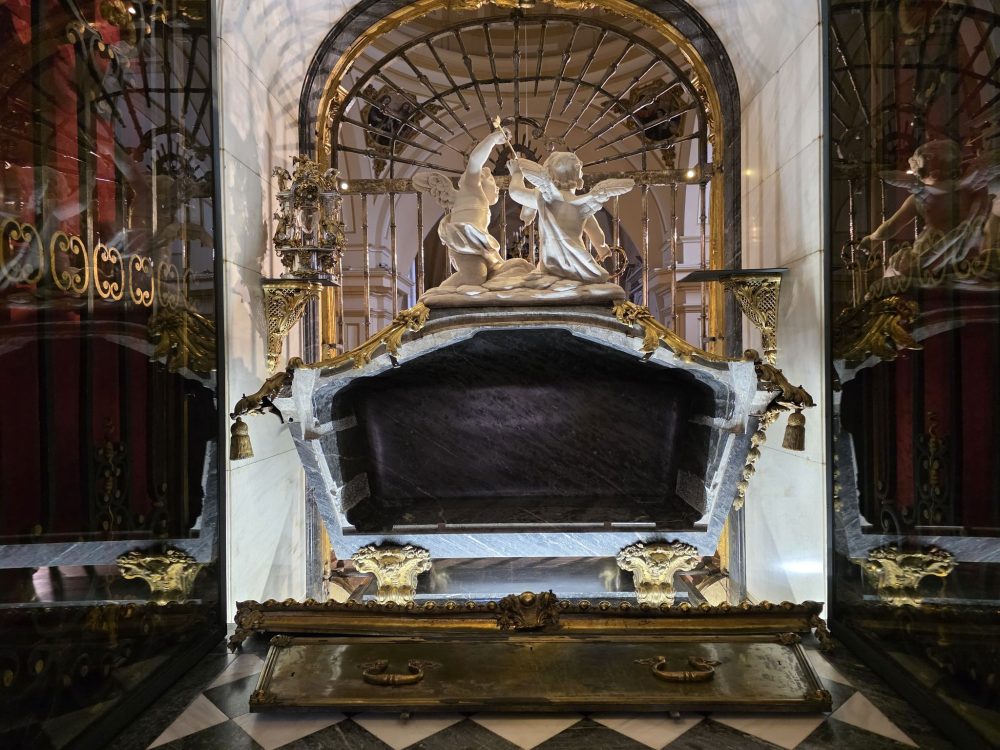 Se está trabajando en la adecuación del sepulcro de mármol y en su limpieza con el fin de instalar en él una vidriera transparente que permita contemplar de modo permanente desde el camarín alto de la Basílica de la Anunciación de Nuestra Señora del Carmen la urna de plata que contiene el cuerpo de la Santa.
