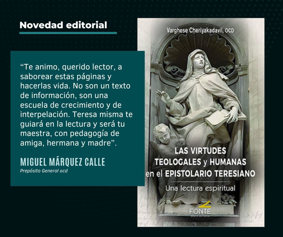 Es una alegría compartir la noticia de una nueva publicación dedicada al epistolario de santa Teresa de Jesús, un campo que, aunque menos transitado que sus grandes obras místicas, empieza a recibir en los últimos años una atención renovada por parte de los estudiosos. Cada vez son más las voces que se acercan a sus cartas no solo como documentos históricos o testimonios biográficos, sino como una vía privilegiada para conocer la espiritualidad viva y cotidiana de la Santa. En esta línea se sitúa el reciente libro del carmelita descalzo Varghese Cheriyakadavil, OCD, Las virtudes teologales y humanas en el epistolario teresiano. Una lectura espiritual, publicado por el Grupo Editorial Fonte.