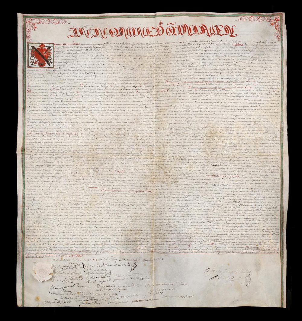 El documento notarial de 1750 narra la apertura del sepulcro motivada por la visita prevista de los reyes Fernando VI y Bárbara de Braganza. Describe con minuciosidad el arca de madera recubierta de terciopelo carmesí, adornada con dragones dorados, cantoneras, esferas y láminas con textos bíblicos y quintillas en honor a la Santa. Aquellos versos, grabados en las placas de bronce, presentan a Teresa como “arca de la Ley” y “mujer dichosa y fuerte” que venció a la muerte.