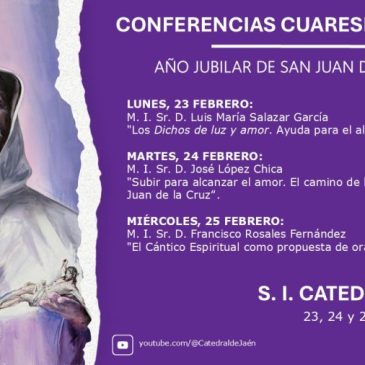 El Cabildo Catedral de Jaén ha organizado, como cada año por el tiempo de Cuaresma, unas conferencias. En el Año Jubilar de San Juan de la Cruz, el místico abulense será el hilo conductor de las tres conferencias cuaresmales. Se desarrollarán en la Sala Capitular de la Catedral los días 23, 24 y 25 de … More Juan de la Cruz en las conferencias cuaresmales de la catedral de Jaén