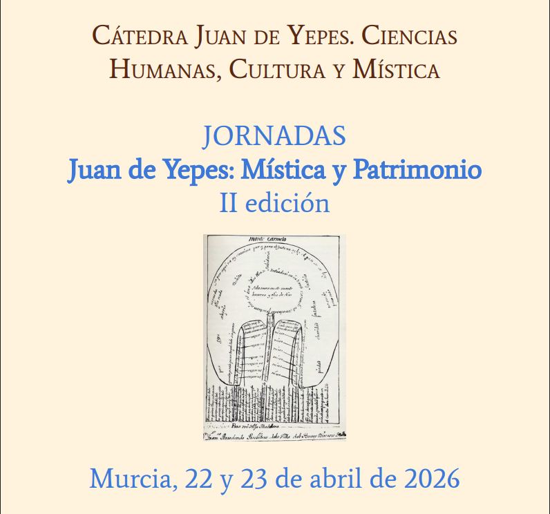 Del 22 al 24 de abril, la Cátedra Juan de Yepes —integrada en el Instituto Teológico San Fulgencio de la diócesis de Cartagena— organiza en Murcia tres días de actividad en torno a la figura de San Juan de la Cruz, articulados en dos propuestas complementarias: las II Jornadas “Juan de Yepes: Mística y Patrimonio” y el I encuentro “Orar en la Encarnación”.