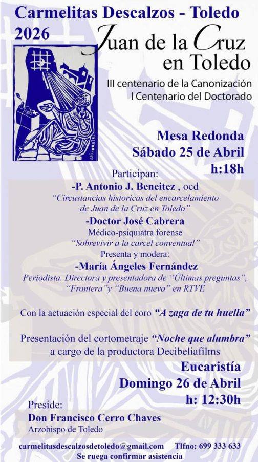 Con motivo del III centenario de su canonización y el I centenario de su doctorado, los Carmelitas Descalzos organizan un encuentro que mira de frente uno de los episodios más decisivos —y más duros— de su vida: su encarcelamiento en la ciudad.