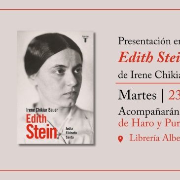 El próximo martes 23 de septiembre, a las 19:00 h, se presentará en la Librería Alberti (Calle del Tutor, 57 – Madrid) el libro Edith Stein. Judía. Filósofa. Santa, de Irene Chikiar Bauer, publicado por la editorial Taurus. En el acto, la autora conversará con Agustín Serrano de Haro y Pura Fernández acerca de la … More Presentación del libro ‘Edith Stein. Judía. Filósofa. Santa’