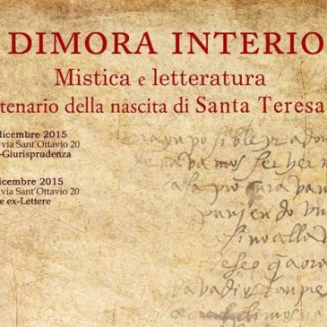 Tres años después, el V Centenario del nacimiento de santa Teresa sigue dando fruto. Acaban de aparecer las Actas de unas Jornadas de Estudio que tuvieron lugar, con motivo de aquel evento, en la Universidad de Turín (Italia) días 9 y 10 de diciembre de 2015. Dichas Jornadas contaron con el patrocinio de la Subdirección General … More La Morada interior. Mística y literatura en el V Centenario de santa Teresa